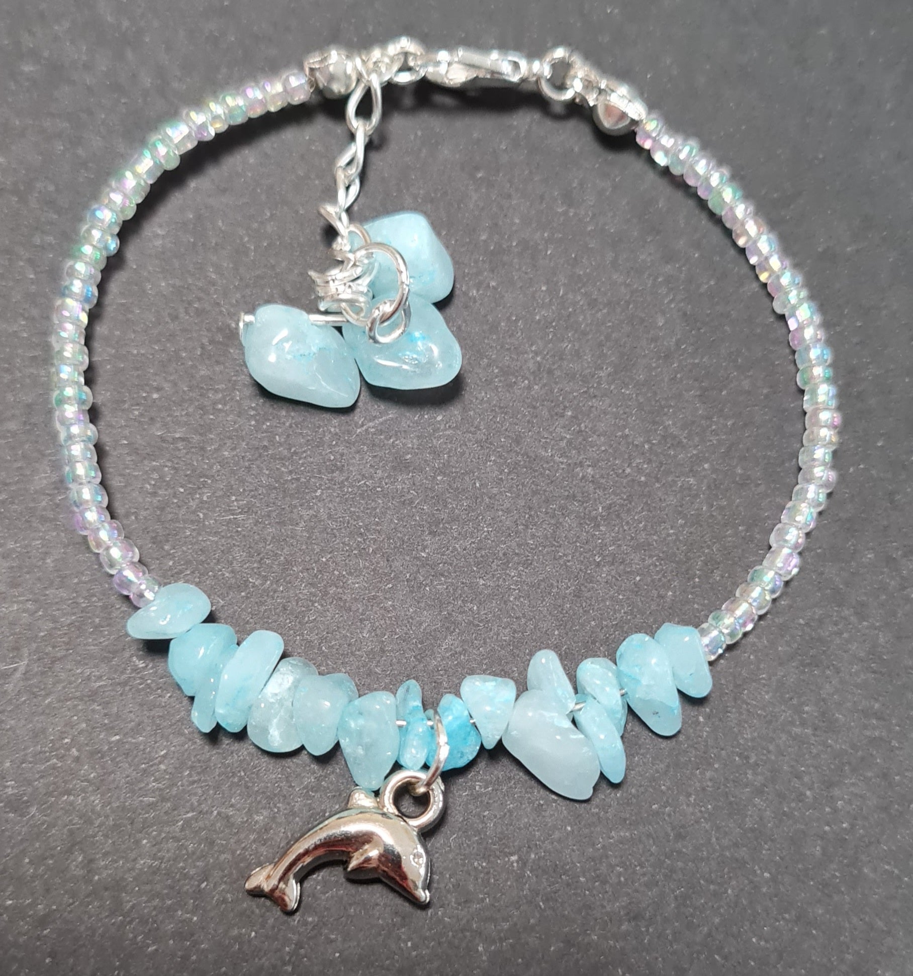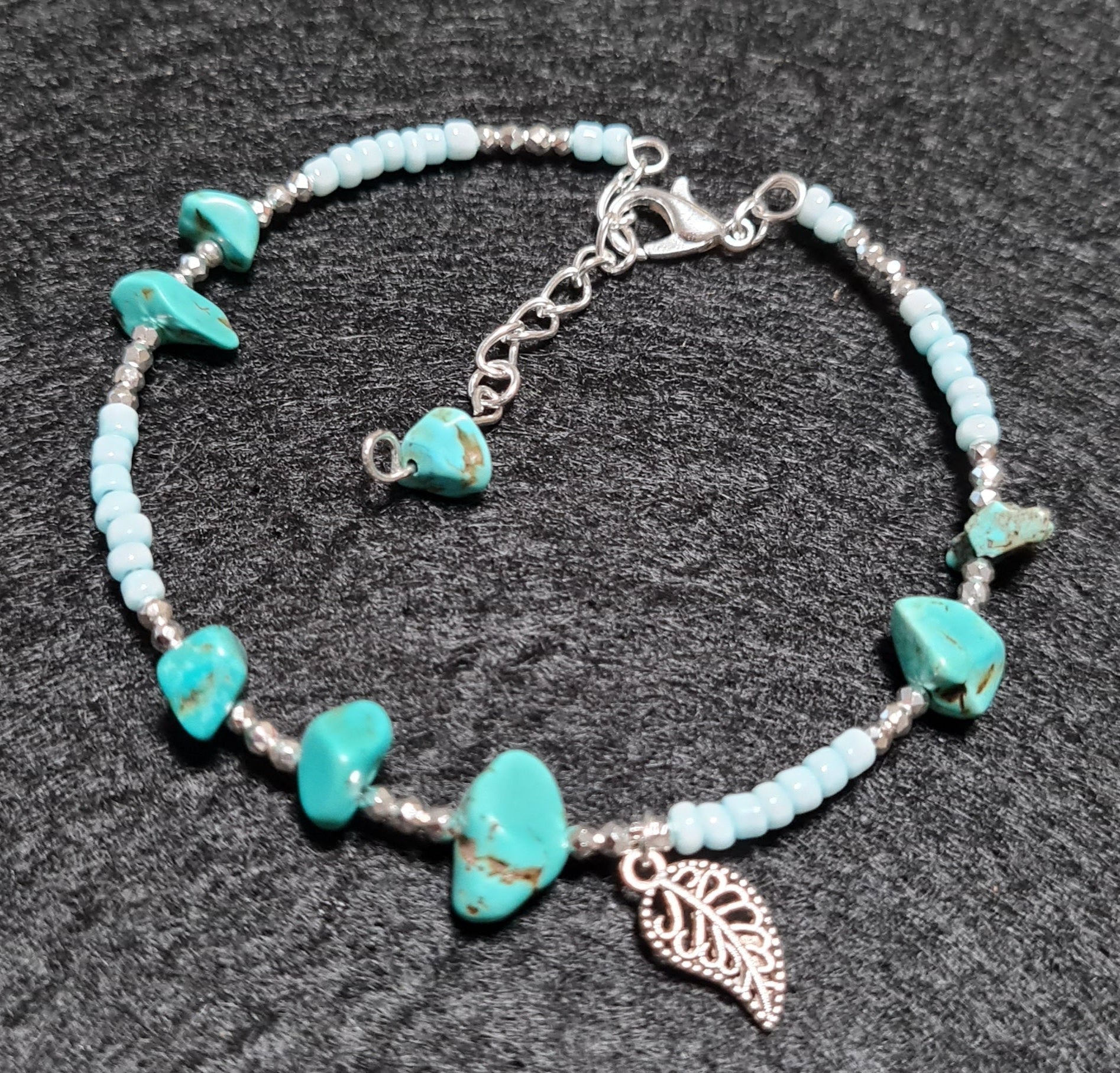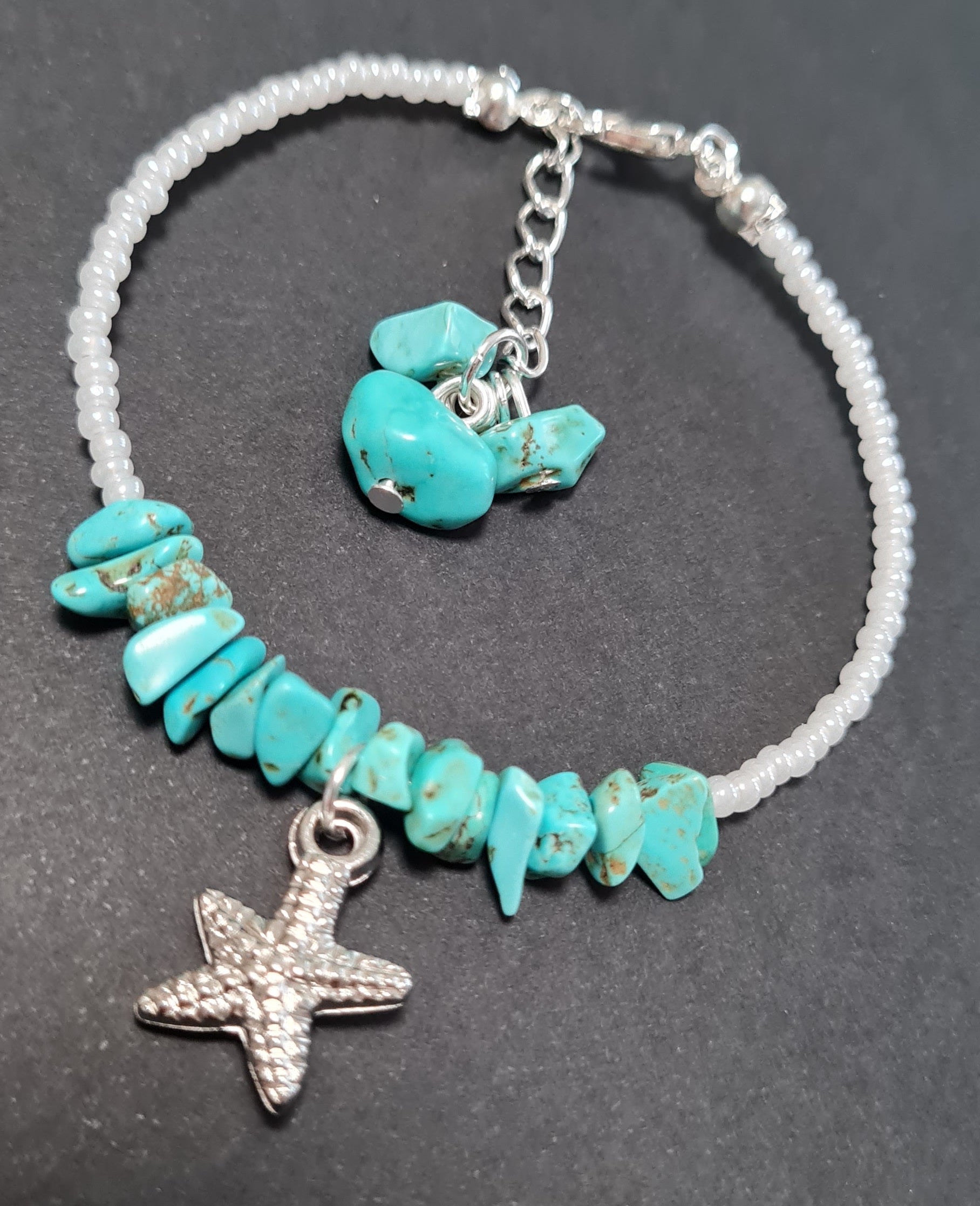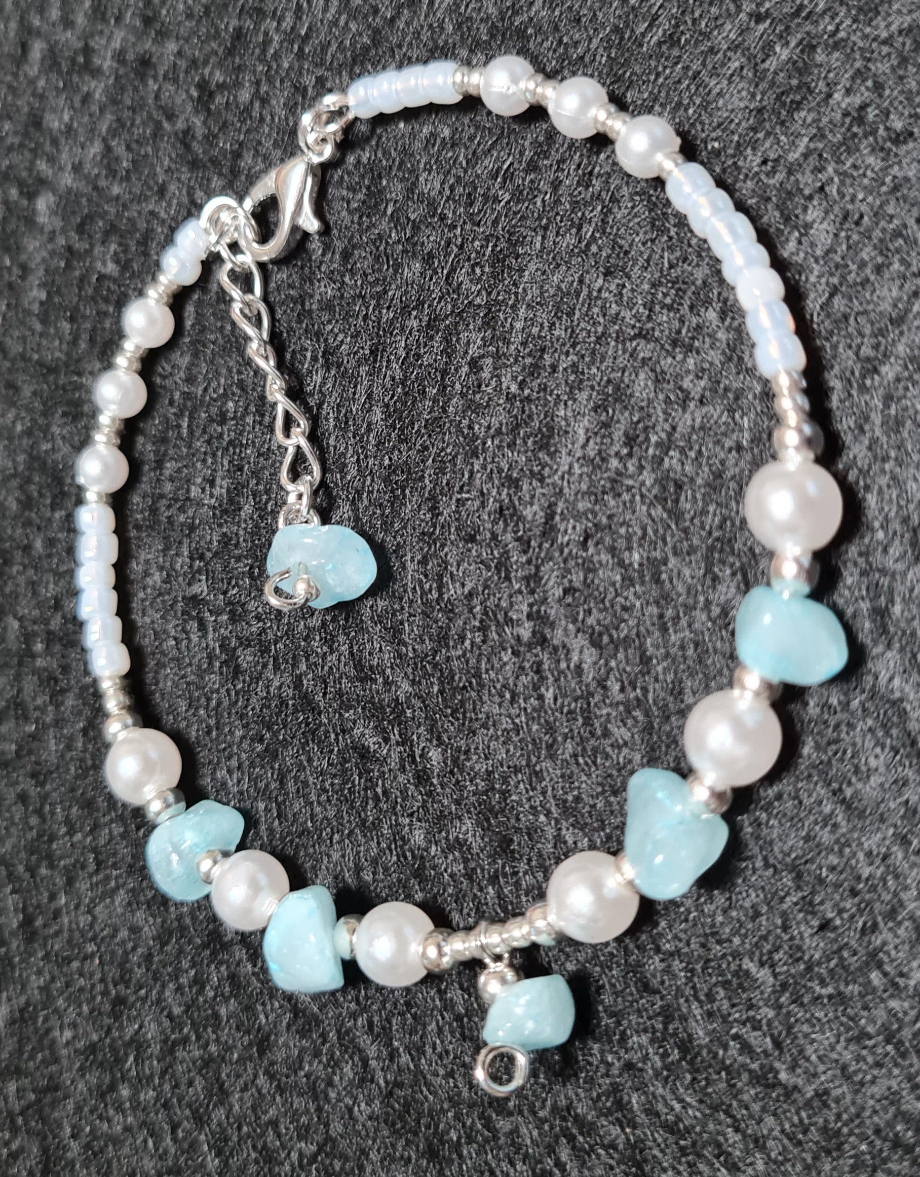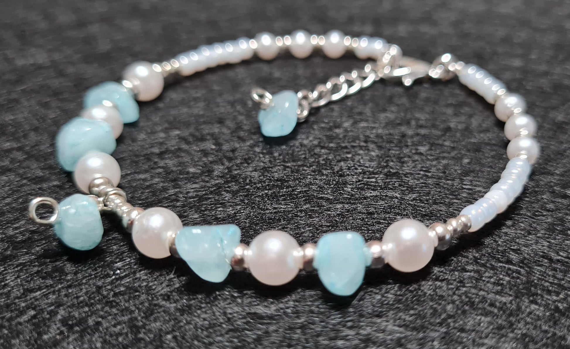 Bracciale rigido Acqua marina, Turchese e Perle sintetiche bianche with charms.
