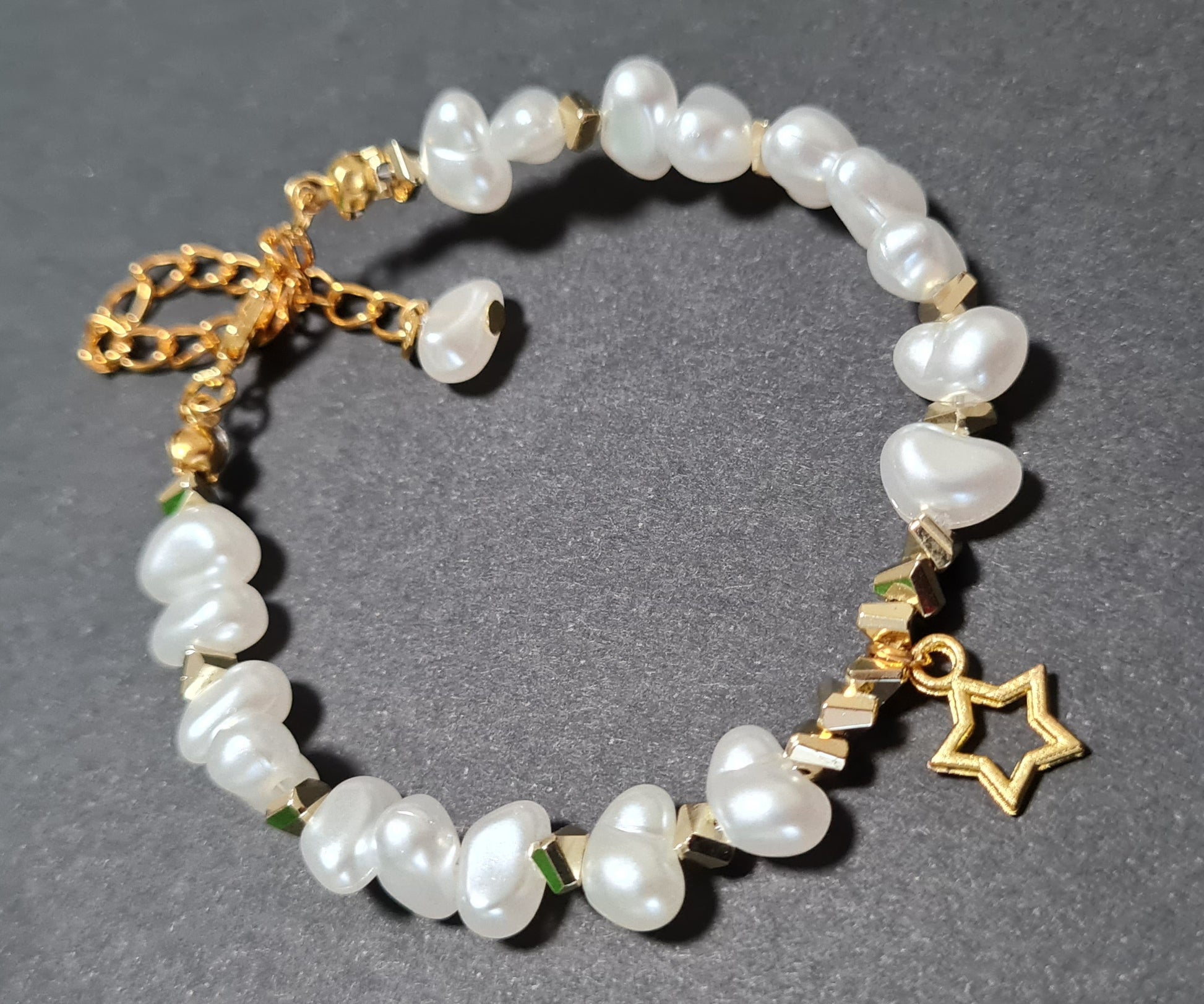 ✨ Bracciale rigido chic e moderno: perle sintetiche che richiamano le eleganti perle di fiume, simbolo di purezza e prosperità , arricchito da charm vivaci che sprigionano personalità e stile unico. ✨